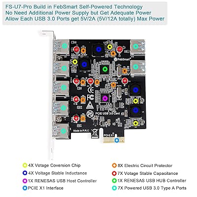 Buy Febsmart 7 Ports Usb 3 0 Superspeed 5gbps Pci Express Pcie Expansion Card For Windows Server Xp Vista 7 8 8 1 10 Pcs Build In Self Powered Technology No Need Additional Power Supply Fs U7 Pro Online In Guatemala B081y4nt25
